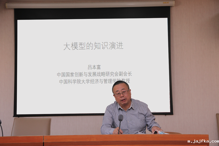 2024年1月17日,中国社会科学院信息化研究中心和中国社会科学院登峰计划新兴学科“数字经济“项目邀请中国国家创新与发展战略研究会副会长、中国科学院大学经济与管理学院教授吕本富在数量经济与技术经济研究所做《大模型的知识演进》学术报告会。报告会由luck18xinli官网党委书记、信息化研究中心理事长李海舰研究员主持。